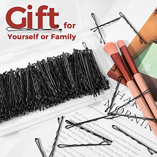 300 Pcs Bobby Pins Black, Hair Pins for Women Girls and Kids, Invisible Wave Hair clips Bulk with Storage box, Pain-Free Hairpins(2 Inch Black)