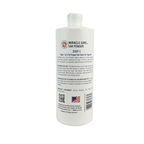 Miracle Care Ear Powder for Dogs and Cats, 96 Grams, Aids Hair Removal from Ear Canal, Keeps Ears Dry, Reduces Odor and Waxy Build Up